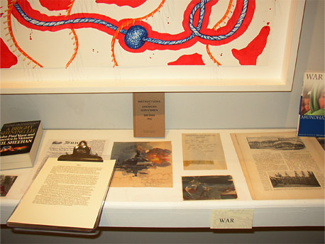 An interactive installation, the Cold War Room is modeled after one-room museums that are founded by an individual compelled to better understand an historical moment. The project merges and matches Cold War history with personal history, incorporating mixed-media works on paper (Matchwork), an archive of Cold War documents, photographs and memorabilia, and a library of Cold War books.