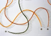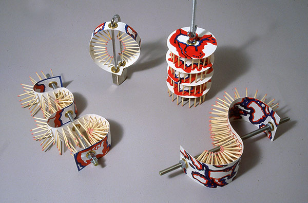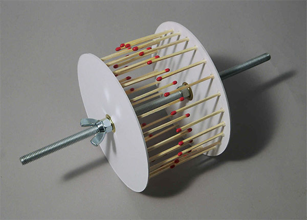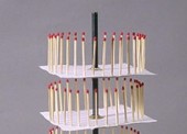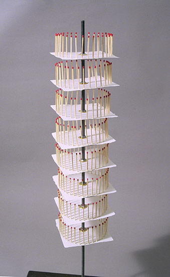 Matchwork employs wooden matches as both medium and image. A disappearing artifact, wooden matches evoke the volatility of the Cold War, suggesting  fragmentation and loss. When placed in patterns matches lend themselves to the rhythmic language of music and the geometries of physics.
